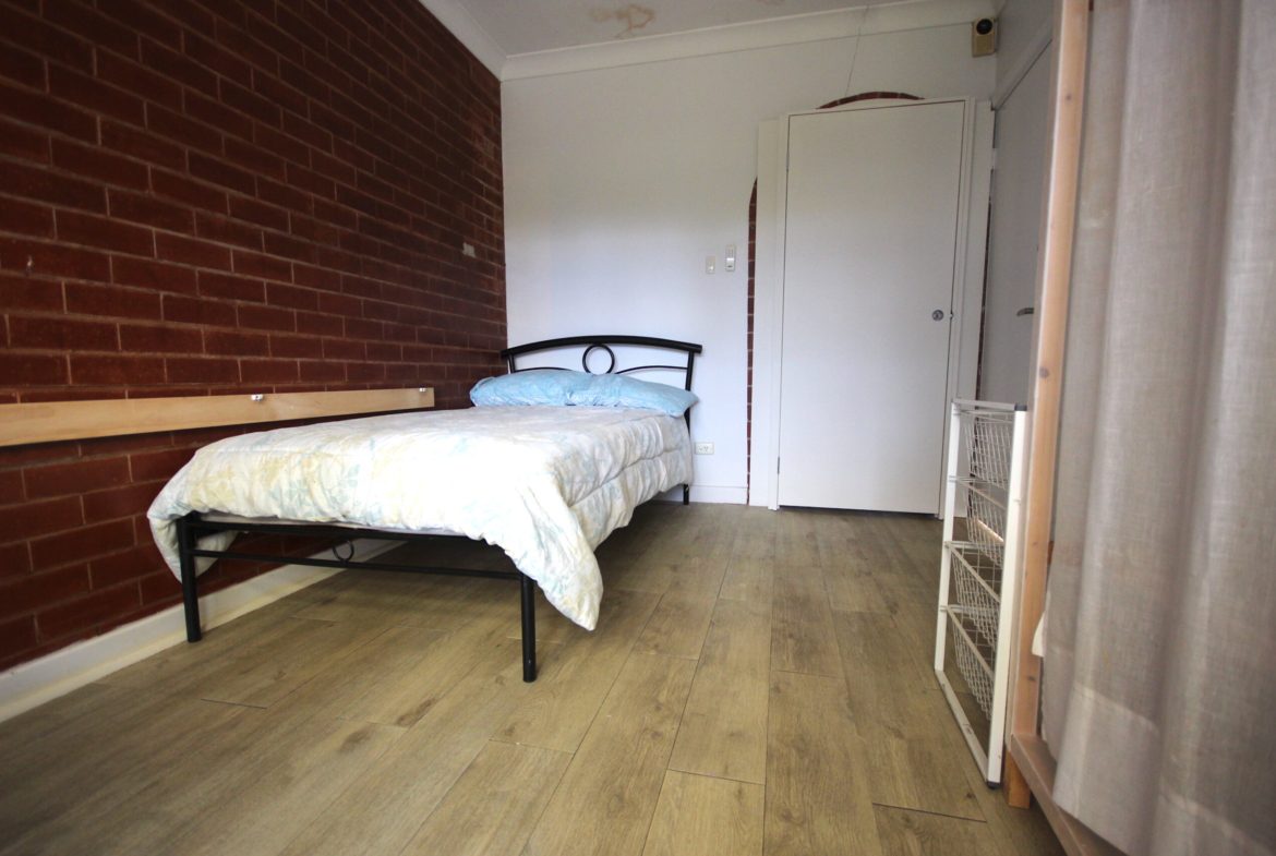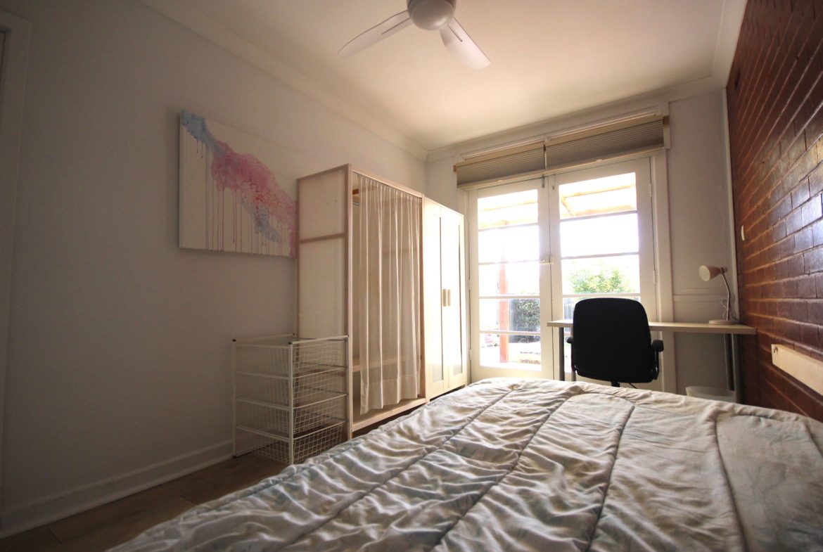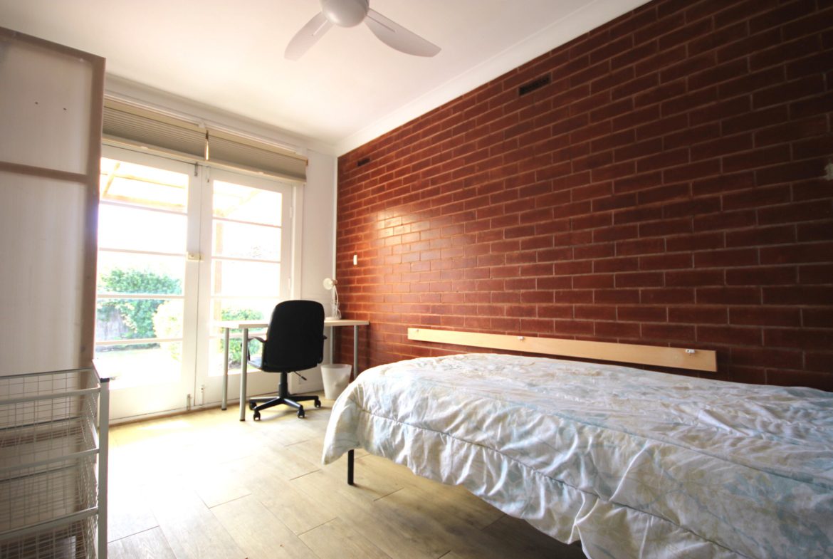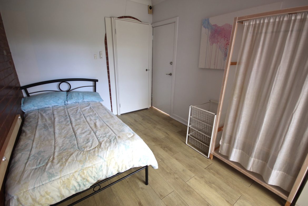 The furthest room away from the road will provide you with all the peace and quiet of a home close to the waterfront! This hardwood floor room is affordable and comfortable, all rolled into one! Complete with study desk (with added drawer space), chair, wardrobe, heater, bedside drawers, fan and a king single bed, you’ll be spoiled for a room in Glenelg at a great rate!