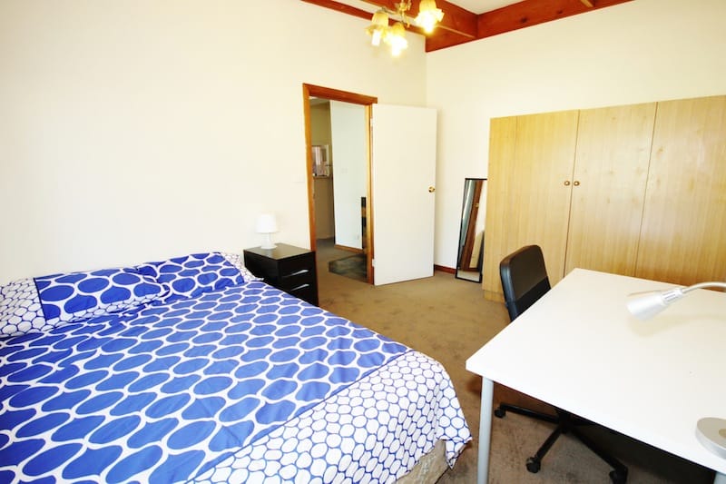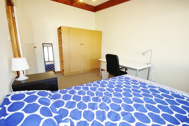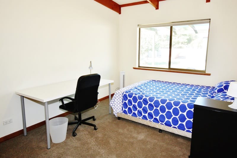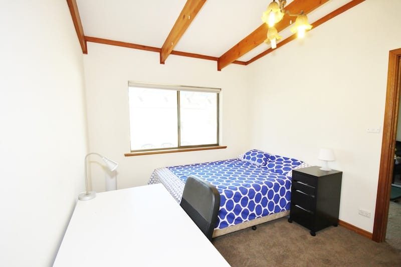 Enjoy a pleasant leafy outlook onto the rear veranda and expansive backyard from this private room. Exposed ceiling beams, carpet and a huge wardrobe feature. Also included is a queen bed, bedside drawers and reading lamp, floor mirror, study desk with office chair