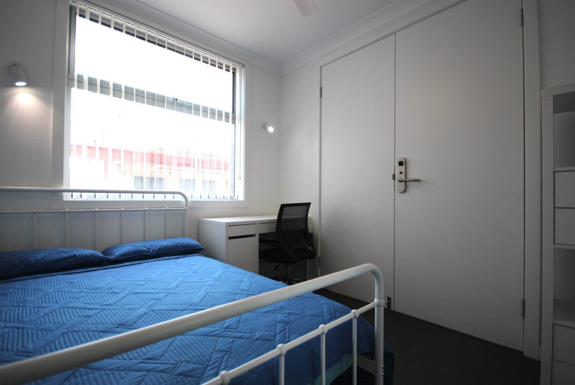 Quiet, bright, spacious – this room has it all. Lots of light, plenty of room and storage space, carpeted floors and individual reverse cycle split system air-conditioning pumped directly to your room, makes for perfect comfort all year round. located on the ground floor of the house, you’ll have the quickest access to the living area, downstairs bathroom and kitchen giving you privacy and quiet time for study, relaxation or sleep. Complete with double sized bed, desk, chair and built in robe.
